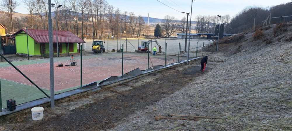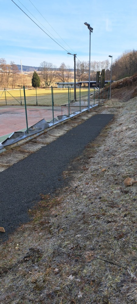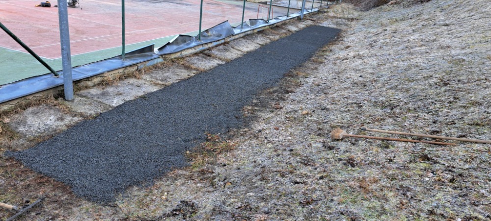Úprava doskočiště v areálu hřiště (březen 2025)