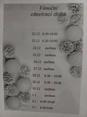 Změna otevírací doby o Vánocích.
